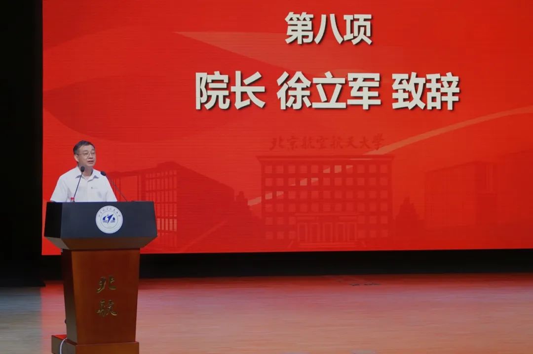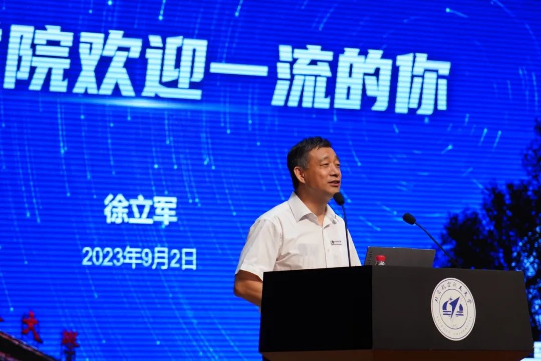 最后,徐立军院长代表学院向各位同学表示了衷心的祝贺和热烈的欢迎,对全体新生提出了殷切的期望,希望同学们在学习生涯及未来的人生道路中,都能坚守爱国奉献的初心,勤学善练,勇立潮头,锤炼敢为人先的品格,成长为堪当民族复兴大任的时代新人。