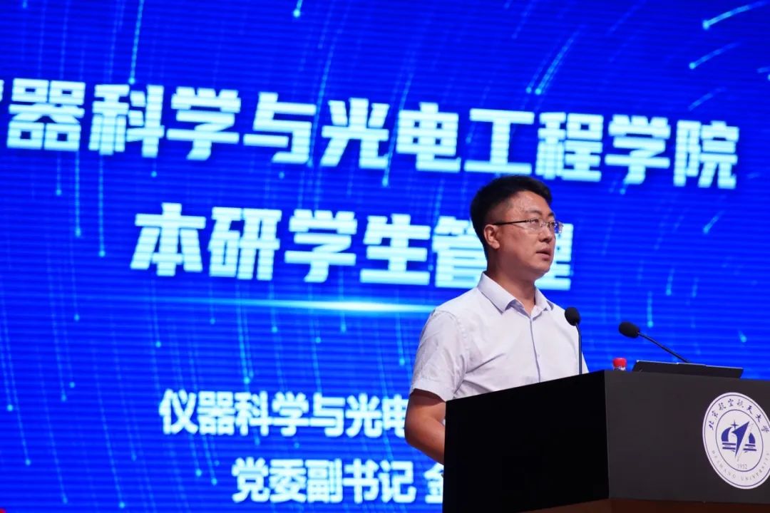 首先,徐立军院长以“一流的学院欢迎一流的你”为题介绍学院情况,深情回顾了三代北航仪器光电人办学的历程,展示了学院一流的思想引领、培养理念、师资队伍、科研团队、平台基地、学科专业、教学及条件,号召同学们不忘初心、牢记使命,要树立远大理想、热爱祖国、担当时代责任,要多维度发展、创造多彩的学习研究生活。