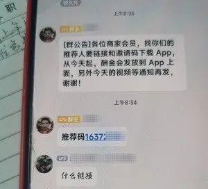 “李警官,你们看,我张贴了这个海报,每天只要拍摄视频到群里,就有20元钱的收益,我已经发了5天,挣到了100元呢!”店老板孙某向民警介绍。