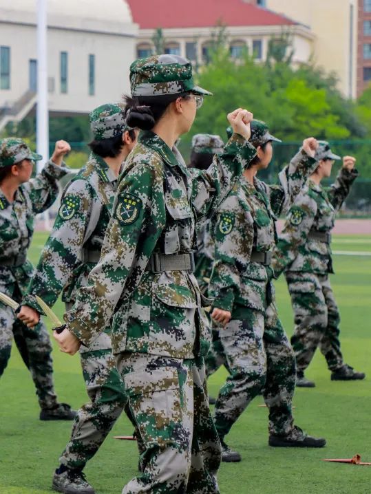休言女子非英物,夜夜龙泉壁上鸣。曙光初照,她们昂头收颔,目视前方,眼神坚定,英气十足,茵茵绿草和橄榄绿的迷彩军装相互辉映,在这份土地上书写青春无悔的篇章。
