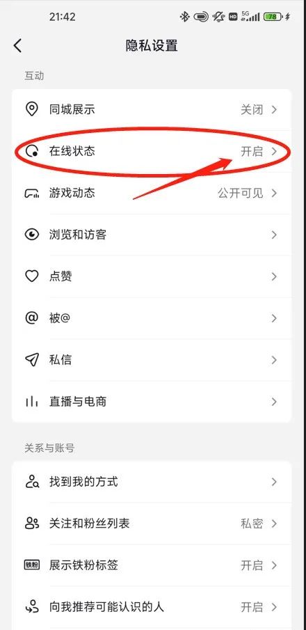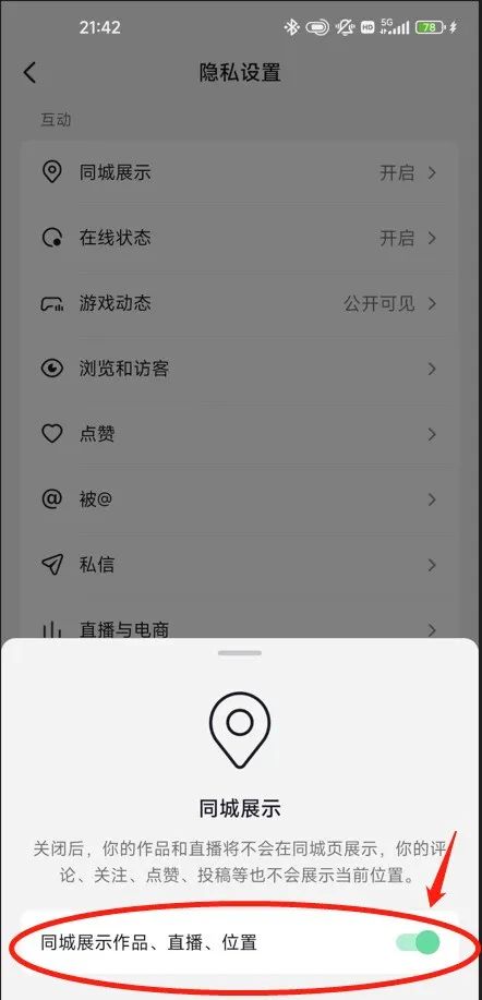 很多店铺抖音为什么没有同城流量,就是因为你的同城展示没有打开,这里有一个在线状态,你要把它打开,很多客户刷到你的视频之后,他想要问你买衣服,要给你发私信,你要把这个在线开关打开,这两个开关非常重要。