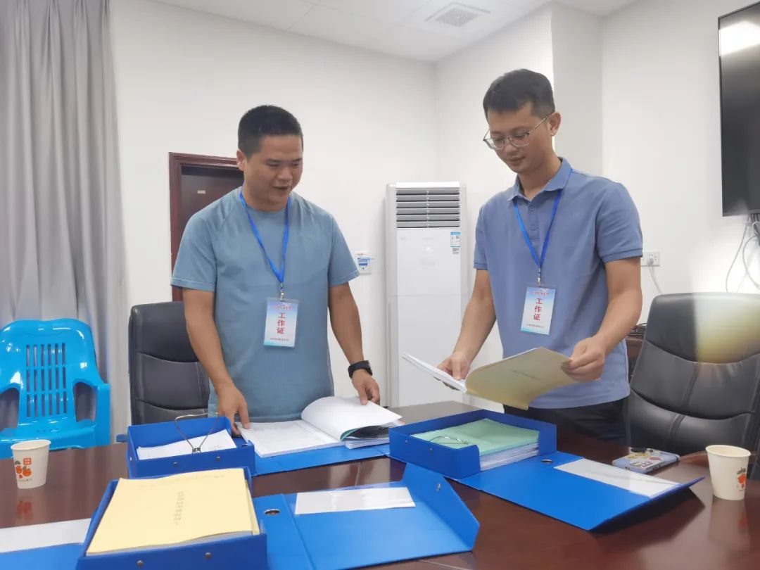 图为高州市纪委监委专项监督组工作人员查看该市重点项目招投标资料。