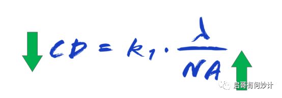 数学好的同学一眼就看出来,想要得到更小尺寸的晶体管,就必须要有更小的光刻机CD,想要得到更小的CD,无非从这几个参数入手。