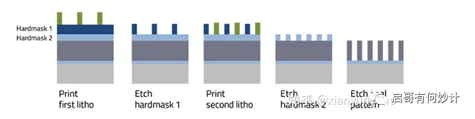 同理LFLE,它是Ltiho-Freeze-Ltiho-Etch, 光刻-固化-光刻-刻蚀。