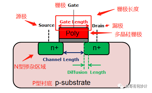 偶尔也有工程师会讨论Channel Length也就是沟道长度,它们的关系是