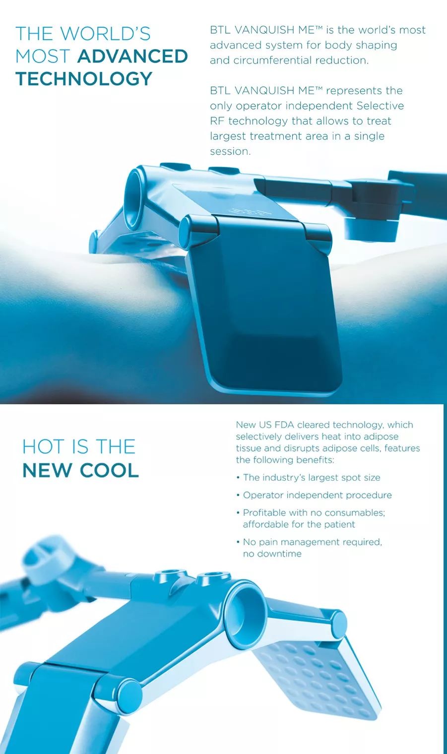 BTL VanquishTM 為你呈現前所未有、無創、無痛,最重要是立時顯現的完美纖體效果!只須在Youtube搜尋"BTL VanquishTM",超過200多段相關短片活現眼前,全因BTL Vanquish MeTM 廣獲全球權威醫美人士使用,就連著名荷李活影星胡比高拔(Whoopi Goldberg)也是其中一位用家。