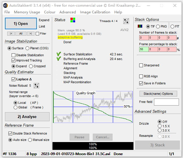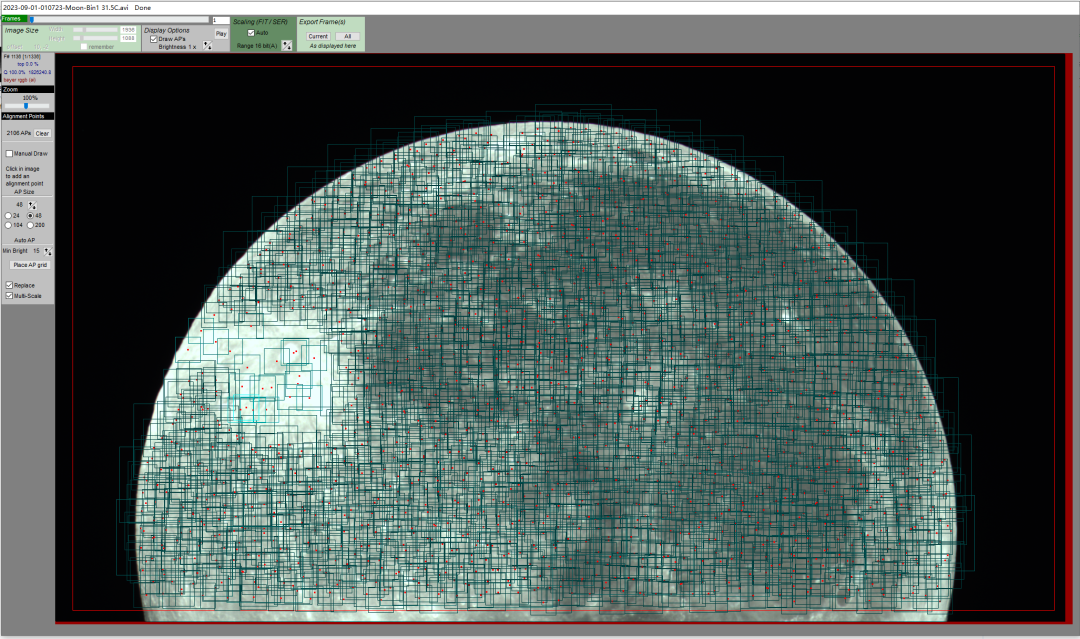 看起来,运用视频叠加(AutoStakkert)与后期小波锐化工具(Registax6),完全可以把增距镜的影响降至等同于无。
