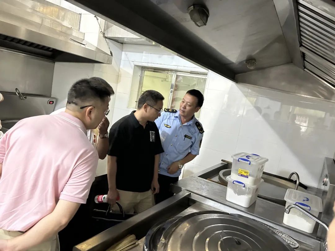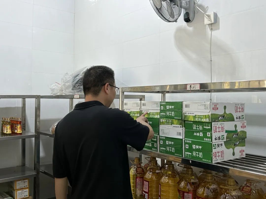 在魏烽副局长的带领下,督察组通过实地查看、查阅资料、询问负责人等方式,对学校食品安全管理开展了全面细致的检查。督察组一行来到食堂实地现场,先后对食堂环境卫生、主副食品仓库、原料进货、后厨加工制作、从业人员健康、食品安全制度、餐具消毒设备、食堂区域监控等情况进行了认真细致的检查。督查组对我校食堂管理工作给予了肯定,对检查中发现的问题,督促食堂负责人尽快整改到位,守牢食品安全底线,保障广大师生用餐安全,安全有序推进新学期开学工作,全力维护校园安全稳定。