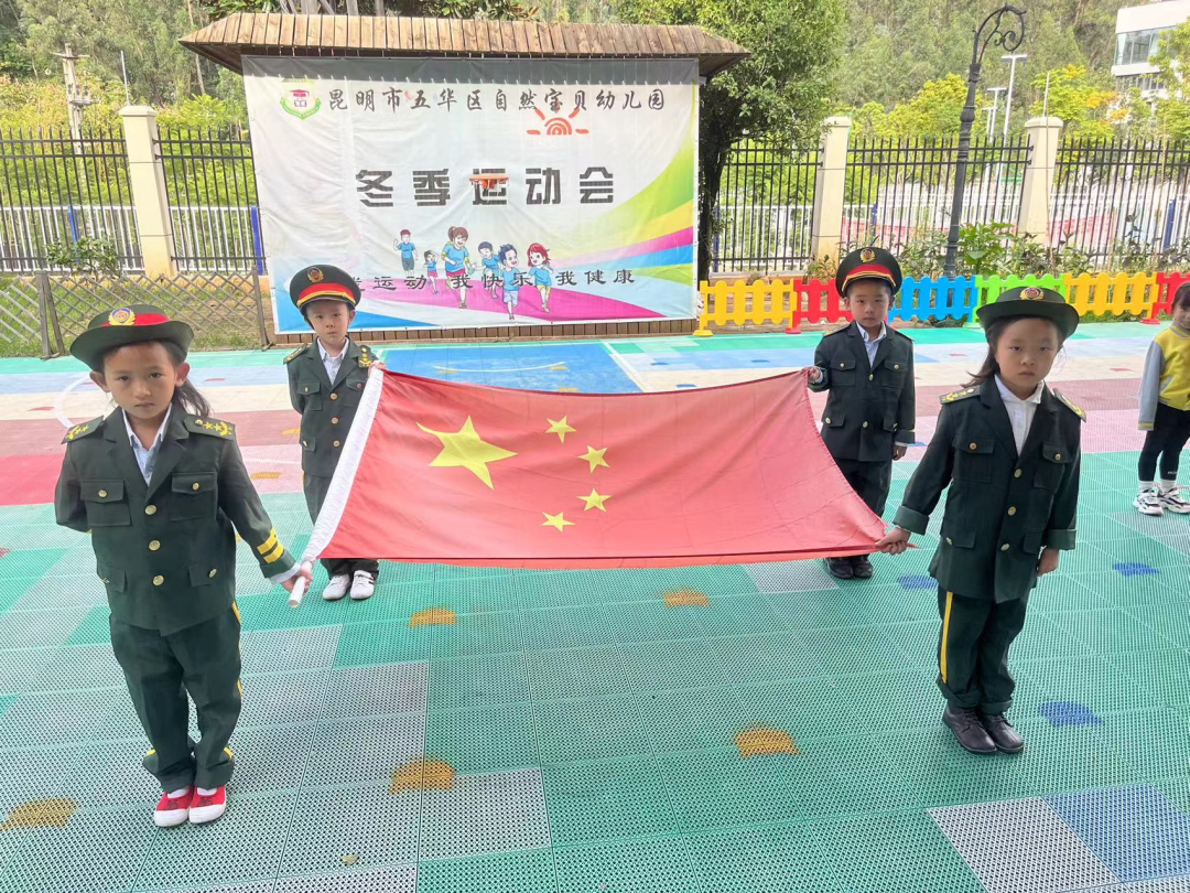 国歌响起,全体师生行注目礼,鲜艳的五星红旗冉冉升起,激昂的《义勇军进行曲》回荡在整个幼儿园。