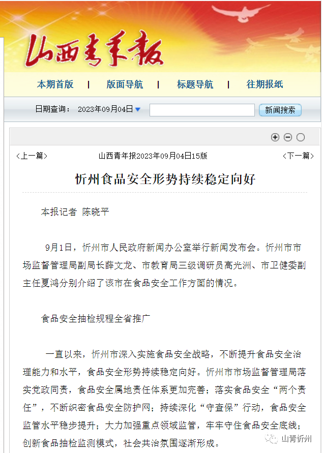 忻州食品安全形势持续稳定向好