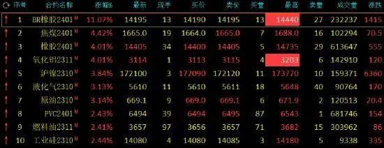 昨日(4日)是传统旺季“金九”的首个周一,国内商品期市开盘多数上涨,合成橡胶涨超12%,焦煤、氧化铝涨超5%,橡胶涨超4%,焦炭、LPG、沪镍、原油涨超3%,燃油、低硫燃料油涨超2%。