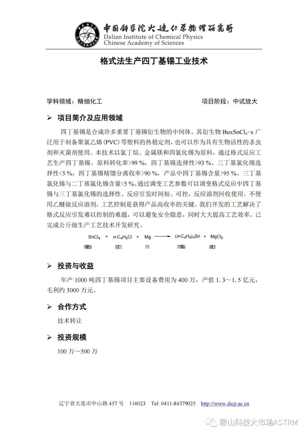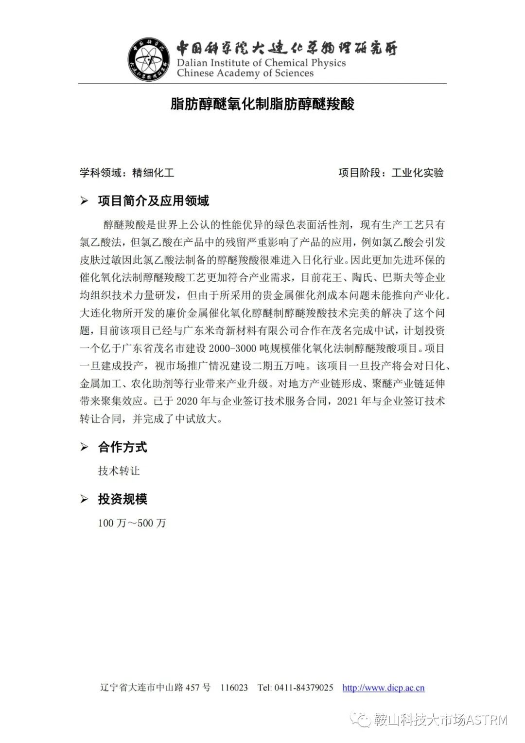 科技成果由中国科学院大连化学物理研究所提供,有需要的企业可拨打电话