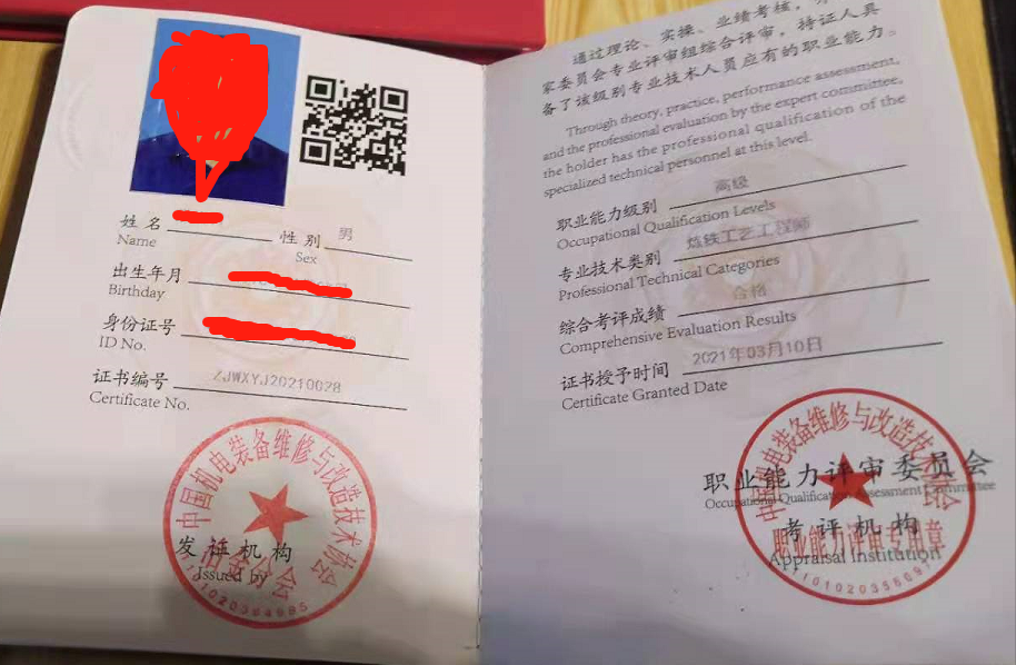▲工程师能力证书内页