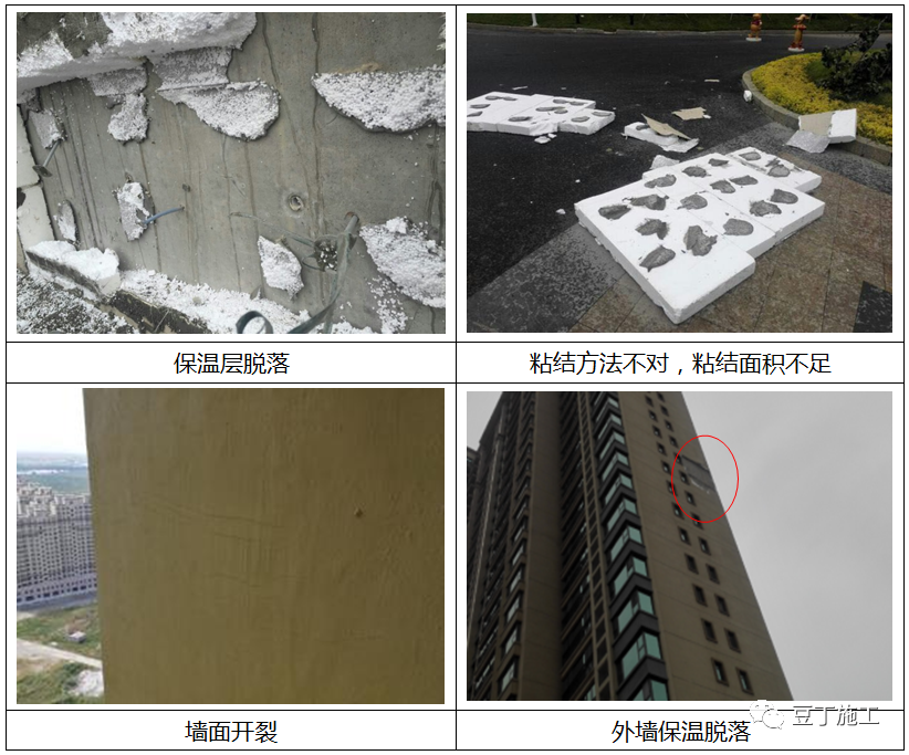 (3)粘结砂浆质量差,聚苯板与砂浆的粘结强度不足;(5)保温板表面荷载过大,极易直接剥离保温层造成脱落;措施:做好保温系统中聚合物砂浆、保温板材等材料的选取和控制;加强过程验收和执行抽检制度;设置分格缝,以吸收墙体结构变形及墙饰面本身温度变形,防止因此而导致的开裂和脱落;必须选用耐碱性能符合标准要求玻纤网、耐腐拉拔力符合标准的锚固件;在施工时对现场墙基面进行界面处理、对使用粘结材料的控制、粘结面积的控制并确保粘结时间。(1)外保温墙体基层设计时大多数不采取水泥砂浆找平,或采取水泥砂浆找平施工时一般没有做防水处理要求;(2)水泥砂浆施工当时气温差异或者说干缩开裂造成缝隙。(3)外保温墙体保温及抗裂层施工干缩开裂造成缝隙;(4)苯板粘贴时局部出现通缝或在窗口四角没有套割;面层中网格布的埋设位置不当,过于靠近内侧;因网格布间断开无搭接或搭接尺寸不能满足规范的要求,窗口周边及墙体转折处等易产生应力集中的部位未设增强网格布; (5)未安窗框先作保温或者做完保温后单抹窗口,外窗框密封胶位置不当;未设保温系统的变形缝,因系统的连续面过长累积变形过大而引起面层的开裂。措施:加强材料验收、隐蔽验收、检验批验收等管理工作;外墙不同材料交接处宜附加金属网后进行找平层施工;防水层应设分格缝;预留门窗洞口尺寸要准确,窗框安装、密封到位;外墙防水层施工时,基层应充分润湿,并分层抹压;施工完后应及时进行淋水养护;保温层施工时墙体界面砂浆涂刷到位,保温板安装排版到位、平整密实,网格布的埋设及搭接合理、压紧抹平;采用柔性防水材料嵌缝,可吸收变形,增加饰面抗渗性能;应在隔一定高度处留设水平伸缩缝,缝中安装间断的托架承担自重,防水产生水平裂缝。(2)施工方法不规范,缺乏施工过程的必要质量控制致使技术、材料的质量性能不符合要求。(3)墙体和保温材料里的水分还没有散发出来,抢工期上防护和装饰层引起长霉、结露现象。(4)外保温墙体干缩开裂造成缝隙,受雨淋后,“水的毛细虹吸”现象,使雨水渗入后导致建筑物室内潮湿、发霉。措施:改善室内湿度死角,保持良好的通风条件;尽量使保温层与窗连接成一个系统以减少保温层与窗体间的保温断点,避免窗洞周边的热桥效应;加强窗根部上口的滴水及窗下口窗根部的防水处理,防止水从保温层与窗根的连接部位进入保温系统的内部;施工时做好保温材料防水措施及成品保护;保温板过大缝隙、脚手架孔洞需用保温板条填塞处理或保温材料堵严。