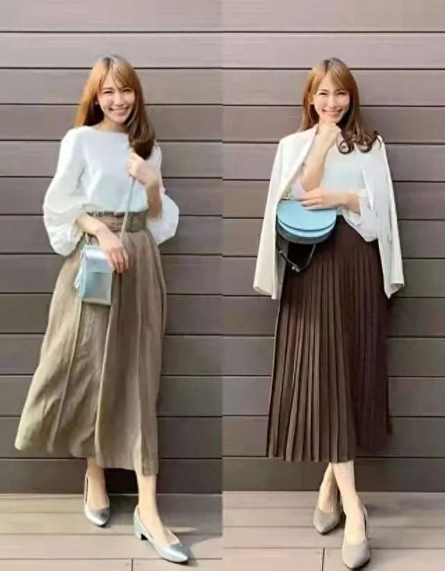 其实只要在装扮中选择灰调或棕调的中长款半身裙加上灯笼袖内搭就可以给人一种满满的温柔感了。