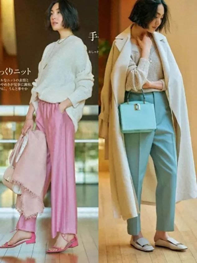 而在搭配过程中,日本女性也很擅长利用服装来修饰自己身材上的不足。较为宽松的裤管可以帮助很多梨形身材的女性改造自己的腰臀比,也可以让很多拥有假胯宽的女性拥有更为完美的身材曲线。