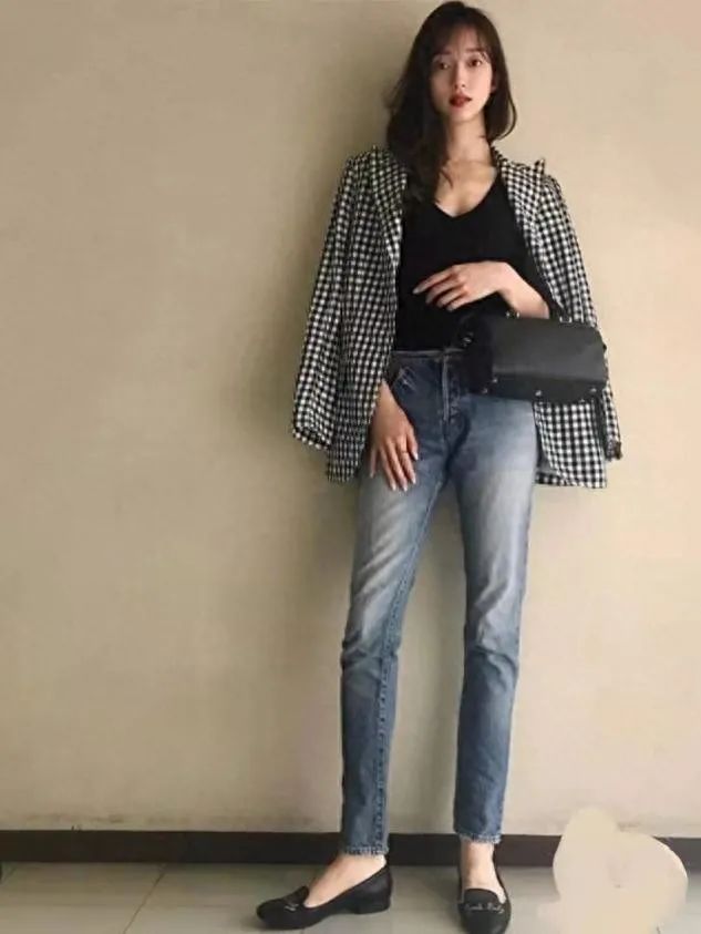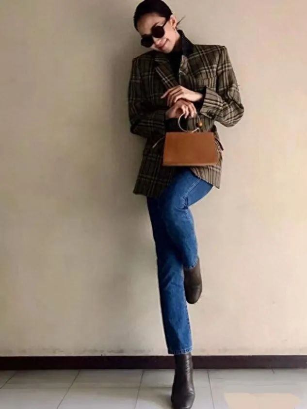 因此与牛仔裤相搭配的单品便顺理成章地成为各种长短不一的夹克风外套。青春活力的同时也能够给人一种干练精干的感觉,是很适合大家学习的穿搭方式。