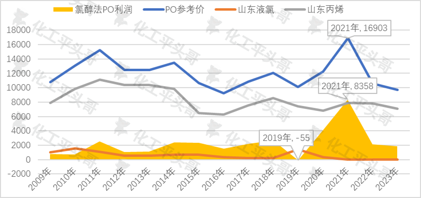 根据从2009年至2023年中旬的价格走势测算来看,过去14年中,中国氯醇法环氧丙烷生产利润波动存在以下规律: