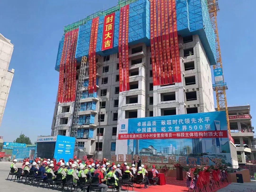 近日,六小村安置房项目一标段主体结构喜封金顶,成为众多标段首个封顶的项目。