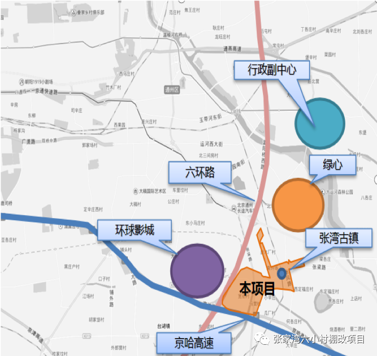 3标段:唐小庄村、立禅庵村、南许场村、瓜厂村本项目位于通州行政副中心南部155平方公里、张家湾古镇南侧,地处京唐发展轴、六环创新发展轴、北京城市副中心1101街区西南部。距离市中心26公里,北距城市副中心6km,西邻环球影城风貌区,与市区联系密切,交通便利,具有优越的区位优势。项目四至:东至施园东路,南至临京哈高速一侧的施园南街,西至临六环路一侧的施园南街,北至施园街。项目位于东六环路与京哈高速交通枢纽东北侧,步行1km范围内拥有凉水河、萧太后河文化景观带。