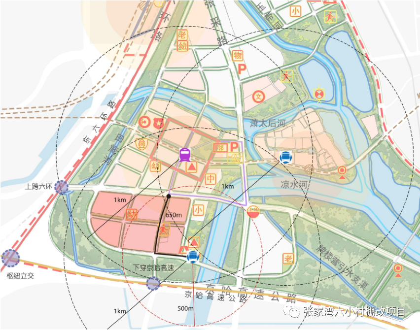 周边步行1km范围内设有地铁站,500m范围内设有公交首末站,拟建公交站位于用地北侧,公交流线穿过用地,各地块居民步行650m以内就可以到达公交站,居民出行便利。信息来源:中国政府采购网、张家湾六小村棚改项目、通州八通网