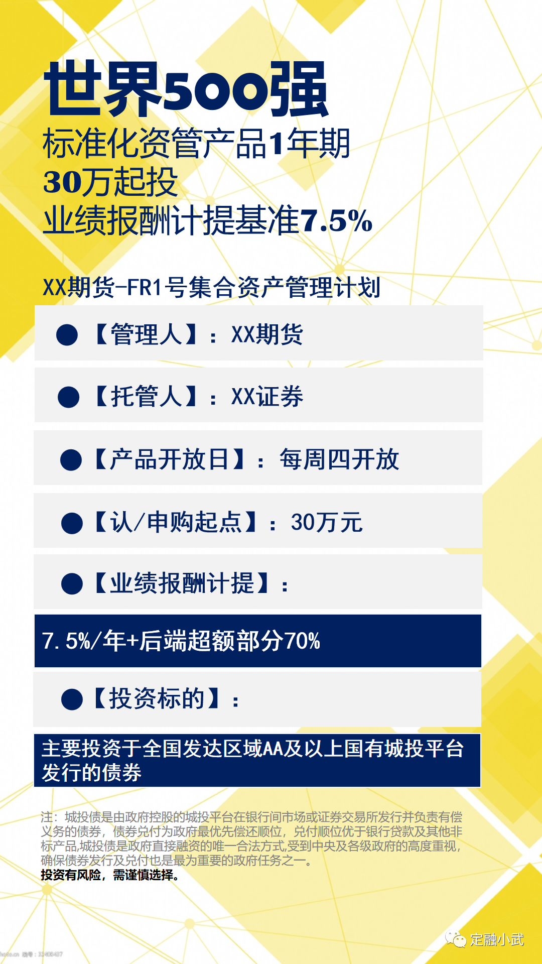 世界500强标准化资管产品?1年期? 30万起投?业绩报酬计提基准7.5%?