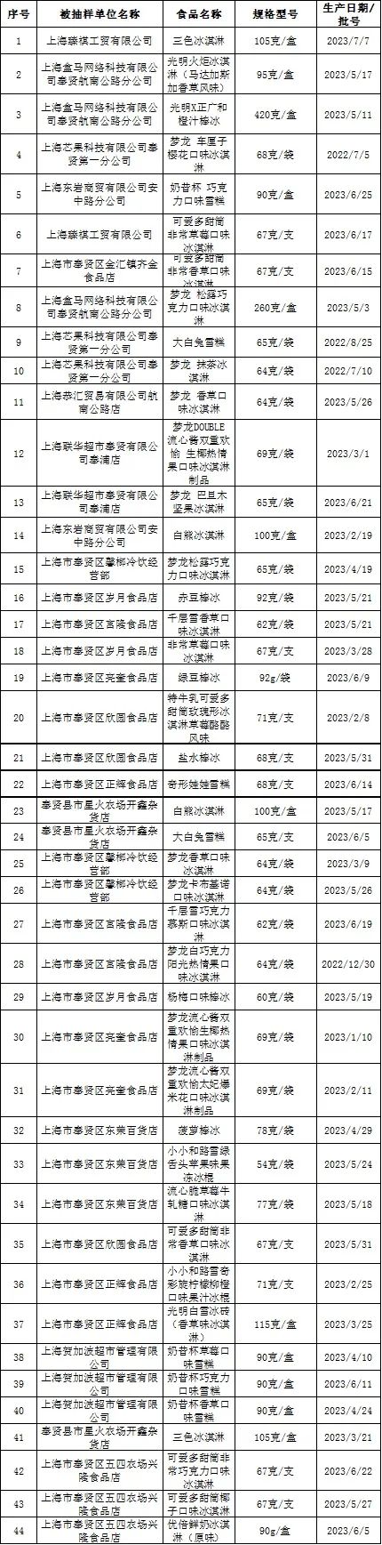 有你关心的雪糕和饮料,8月奉贤区食品检测结果出炉!