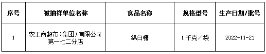 开展绵白糖等食糖监督抽检1批次,经检测,全部合格。开展泡豇豆(酱腌菜)等蔬菜制品监督抽检4批次,经检测,全部合格。开展精制肥牛肉卷等速冻食品监督抽检1批次,经检测合格。开展老式面包糕点等特殊膳食食品婴幼儿高铁米粉监督抽检1批次,经检测合格。开展饮用天然水等糕点食品监督抽检5批次,经检测,全部合格。报送:於天(区市场监管局)
