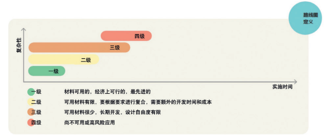 通过评估企业的产品组合并将产品零件分类为从“唾手可得的且可行的”到“最好的且尚不可行的”不等,设计者/制造商可以定义路线图和第一个起点(见图7)。