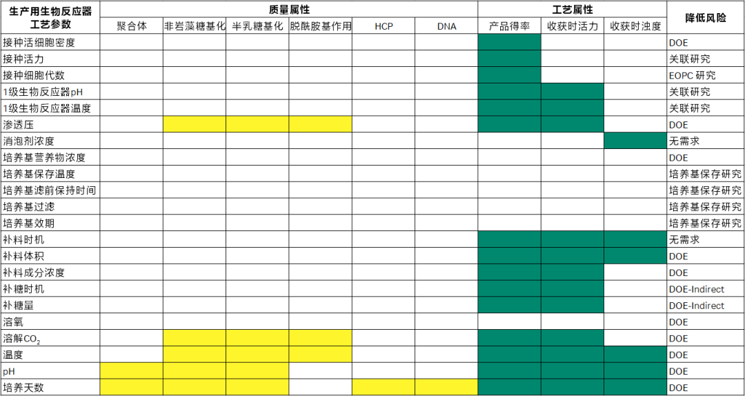 工艺参数的分类,即哪些是关键工艺参数 (CPPs) ,哪些是非关键工艺参数 (Non-CPPs) ;