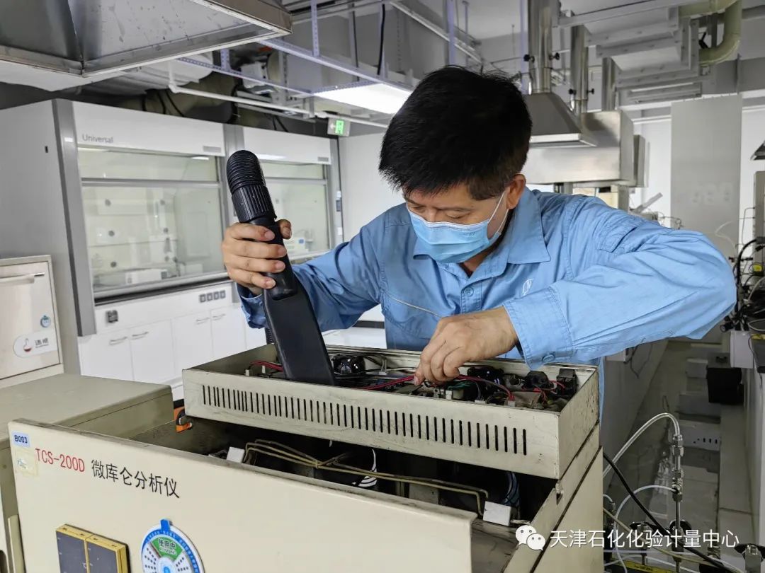 秉承着“能自主维修就不请厂家来”的传统,化工化验站的技术员们集体转换身份为“设备员”,加入到自助维修仪器的队伍中。天气潮湿,微库仑定硫仪和紫外荧光定硫仪的石英炉短路烧毁,常群马上联系厂家订购石英炉,在一周之内完成运输、安装、调试,他湿透的后背是班组人员按时完成生产任务的“定心石”。
