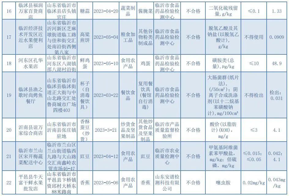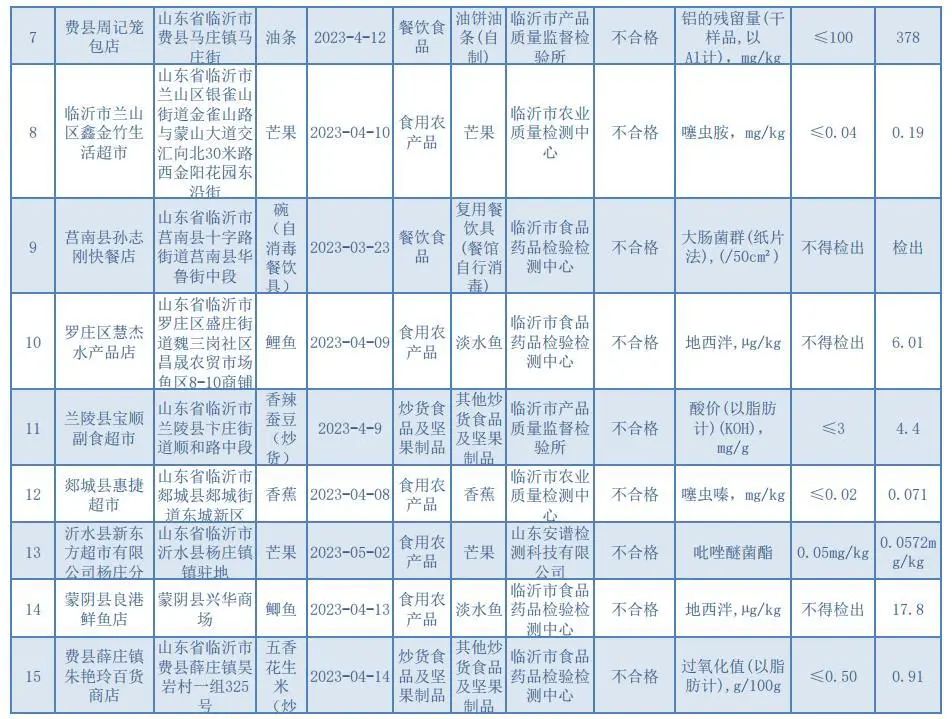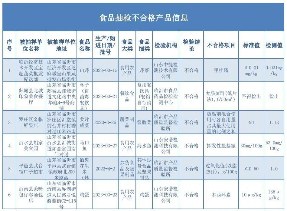 根据《中华人民共和国食品安全法》及其实施条例等有关规定和临沂市食品安全监督抽检计划安排,为进一步保障食品安全,市市场监督管理局对餐饮食品、蔬菜制品、速冻食品、食用农产品等26大类食品1579批次样品进行了监督抽检,其中蔬菜制品、食用农产品、粮食加工品等6大类食品24批次样品不合格,检出农药残留、质量指标、食品添加剂超标等。