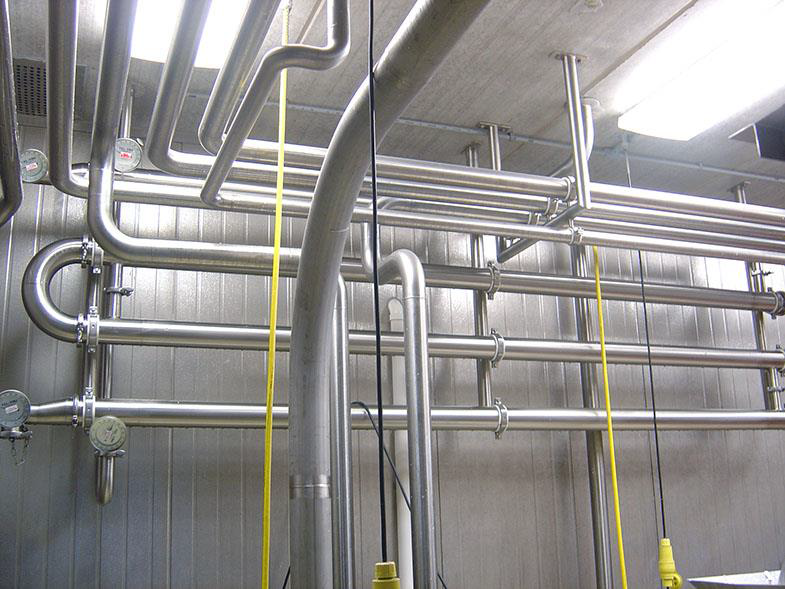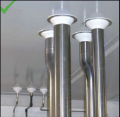 室内管道应离开墙壁,以便更好地清洁。吊管吊杆应光滑圆润,吊杆两端应采用圆管密封。 线缆应从天花板上垂下,从而降低了污染的风险。