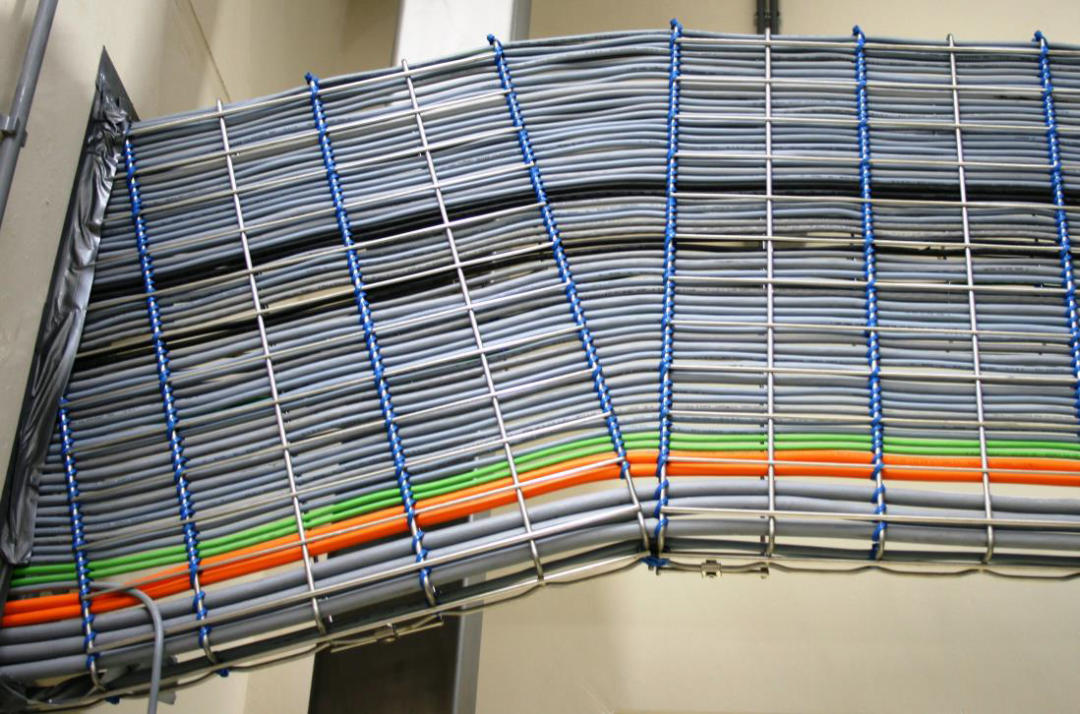 当电缆桥架穿墙时(下图),电缆穿过后剩余的开口需用耐火材料密封,以保持耐火等级和相应的卫生标准。