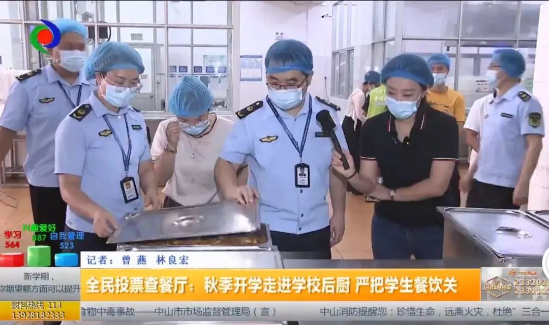 带着大家的关心和疑惑,在9月4日开学首日,市市场监管局开展一期食品安全进校园“全民投票查餐厅”活动,邀请市教育和体育局、家长代表和媒体共同参与现场检查,本次直播是与省局联动开展的“开学第一查”活动,同步在省直播平台播出。