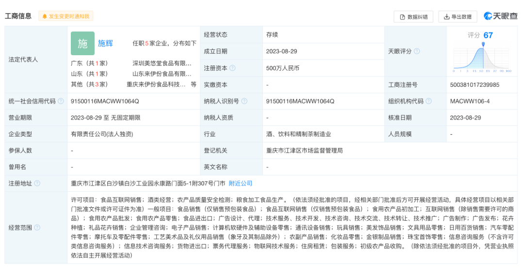 3.来伊份成立重庆食品科技公司