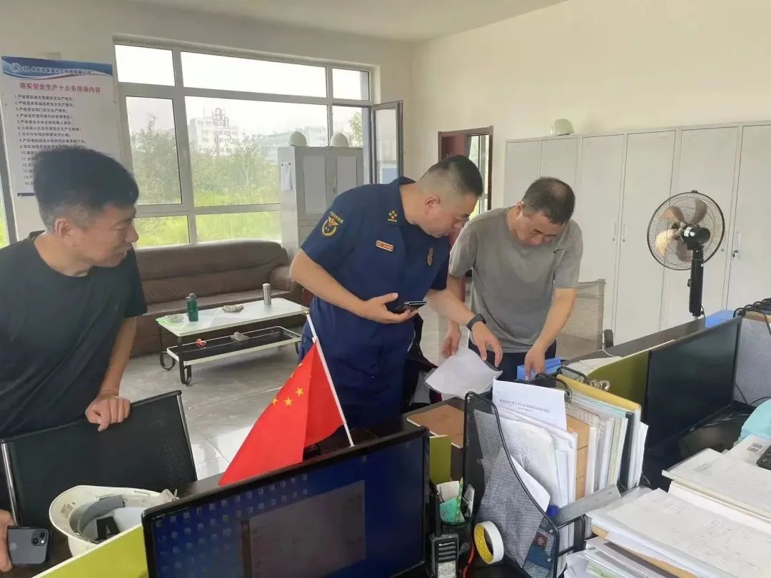 为深入推进大排查大整治工作,全面夯实社会面火灾防控网,确保辖区消防安全形势持续稳定。9月5日,阜蒙县大队深入伊吗图化工园区开展消防安全检查指导工作。在凯森盟化工科技有限公司、汉道化工有限公司、东欣化工科技有限公司,大队监督检查人员重点对室内外消火栓是否完整好用;自动消防设施是否运行正常;灭火器材配备是否符合规定;用火、用电、用气、用油等消防管理制度是否落实、消防控制室值班人员是否持证上岗等情况进行了全面检查。检查过程中,大队监督员详细听取了企业负责人对企业的重点安全保障部位、消防控制室等硬件设施、管理制度和员工培训的工作介绍,翻阅了企业应急预案、日常演练等台账记录。详细了解了厂区功能规划设置和危化品运输、储存、使用情况,现场查看了生产原料、产品种类以及消防水源设置情况,并对火灾报警系统、自动喷水灭火系统、室内(外)消火栓等消防设施运行状态进行功能测试。对检查中发现的问题,从专业的角度进行业务指导,并责令限期整改。同时,要求企业要自觉遵守消防安全管理规定,严格落实消防安全责任,加大日常的隐患排查力度,加强消防宣传教育,强化员工消防安全知识培训,切实增强单位自身防御和抵御火灾的能力。针对检查中发现的问题,大队现场提出整改措施,并要求企业负责人要严格落实消防安全管理主体责任,进一步强化消防安全自我管理,切实做好日常防火巡查、检查工作,确保各项消防安全防范措施落实到位。下一步,大队将深化源头治理、系统治理和综合治理,全面提升化工企业消防安全管理水平,确保消防安全形势持续平稳,为园区企业消防环境持续稳定奠定坚实的基础。