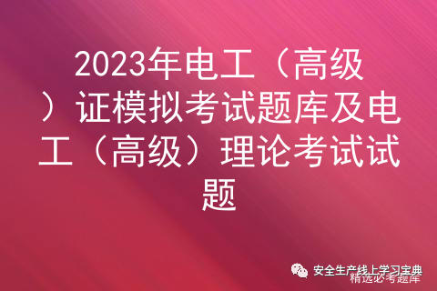 2023年电工(高级)证模拟考试题库及电工(高级)理论考试试题是由安全生产模拟考试一点通提供,电工(高级)证模拟考试题库是根据电工(高级)最新版教材,电工(高级)大纲整理而成(含2023年电工(高级)证模拟考试题库及电工(高级)理论考试试题参考答案和部分工种参考解析),掌握本资料和学校方法,考试容易。电工(高级)考试技巧经过题库老师和电工(高级)已考过学员的汇总,相对有效而可行的复习方式就是对电工(高级)的试题攻克,进行多方面的试题训练。2023电工(高级)证模拟考试题库及电工(高级)理论考试试题个人、培训学校进行考试前有效训练,确保学员学习后能顺利通过考试。