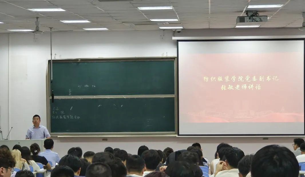 2023年9月3日19:00,纺织服装学院在博远楼103召开了2023级研究生新生见面会暨入学安全教育会议。纺织服装学院党委副书记张敏老师、纺织服装学院副院长田明伟老师、2023级研究生辅导员孙文军老师、2022级研究生代表及2023级研究生全体新生参加了此次会议,会议由孙文军老师主持。