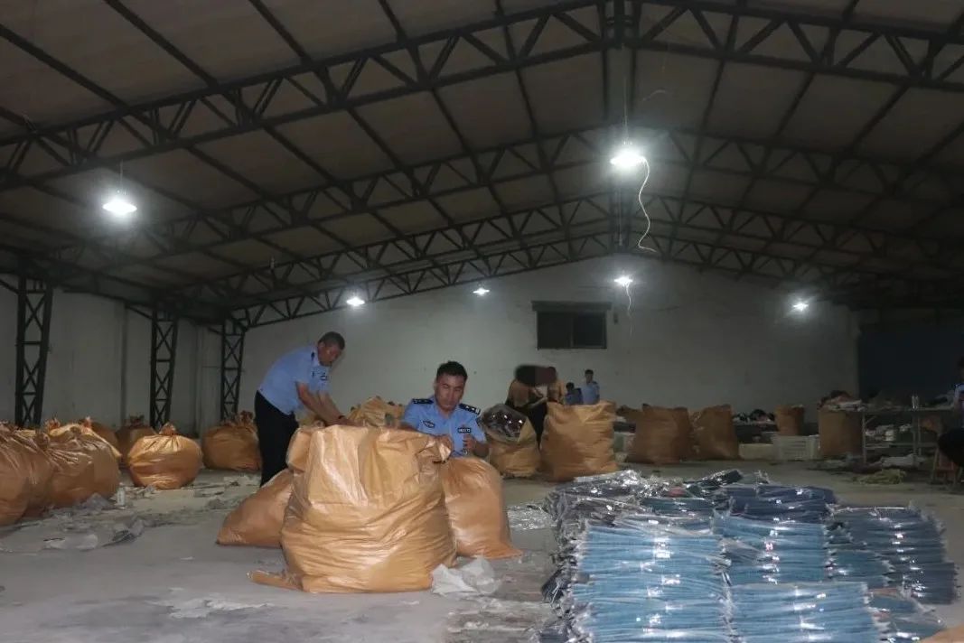 7月26日,嘉祥县公安局食药环侦大队在工作中发现,嘉祥县梁宝寺镇的一服装加工厂外观无明显标识,大门常日紧闭,工厂附近垃圾桶及草丛内有丢弃的破损品牌服装标识,该厂疑似生产假冒品牌服饰。嘉祥县公安局高度重视这一线索,迅速组织警力跟进调查研判并向济宁公安局支队汇报,抽调精干力量组成专案组,精准开展深度研判。专案组民警夜以继日开展线索摸排、比对核查和案情会商,成功挖掘出一条特大跨省假冒注册商标的犯罪链条。8月1日,专案组开展第一次收网行动,捣毁一生产假冒注册商标服装生产仓储窝点,现场查扣耐克、阿迪达斯、斐乐、彪马、北面5个品牌吊牌38万余枚、假冒注册商标的服装4万余件,扣押制假设备等一宗。8月3日、4日将犯罪嫌疑人李某强、高某龙等人相继抓获到案,打开案件突破口。专案组乘胜追击,分赴青岛、泰安等地,对疑似生产加工窝点进行确认和取证,犯罪嫌疑人芦某、李某恒等人先后抓捕到案。8月29日,专案组展开第二次收网,捣毁印烫假冒注册商标窝点,抓获印烫商标的犯罪嫌疑人王某盛等人。