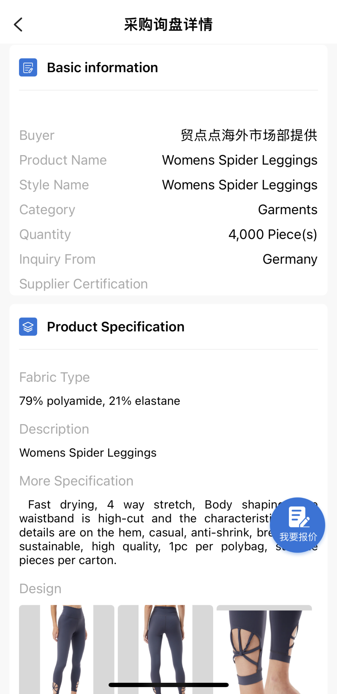 对接中的订单:女士瑜伽裤4,000件