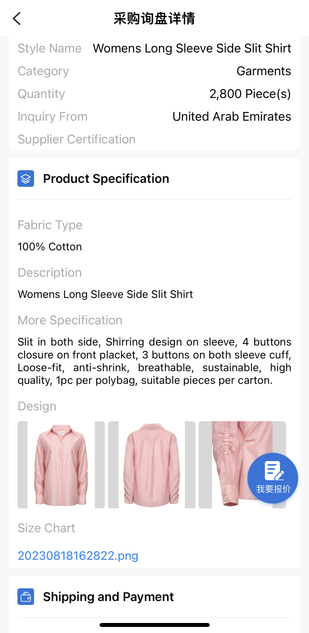 对接中的订单:男士衬衫4,200件