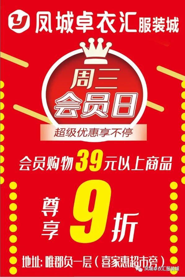 卓衣汇服装城周三会员日不止9折!店面全面升级,潮牌 爆款尽在卓衣汇