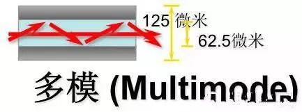 在一定的工作波长下(850nm/1300nm),有多个模式在光纤中传输,这种光纤称之为多模光纤。由于色散或像差,因此,这种光纤的传输性能较差,频带较窄,传输容量也比较小,距离比较短,有色散。发光二极管可作为光源。