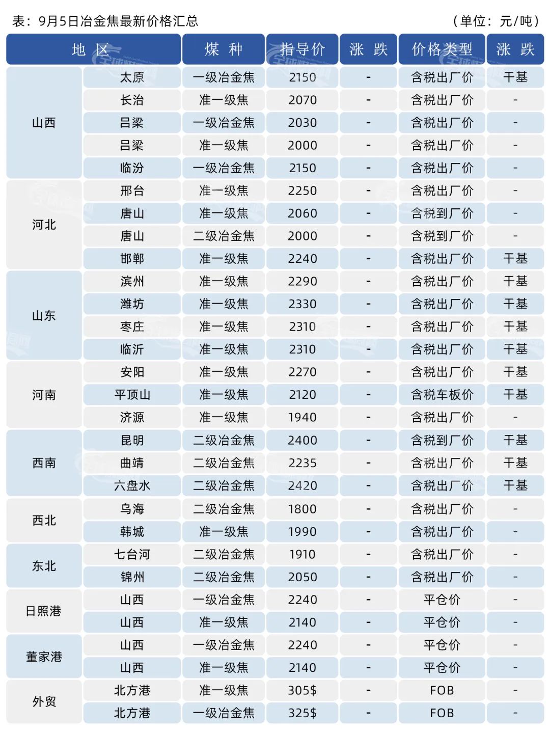 现甘其毛都口岸:蒙5#原煤1360,蒙5#精煤1685,蒙4#原煤1280,蒙3#精煤1480;策克口岸:马克A930,马克西970,欧斯克A730,欧斯克A+930,欧斯克B970,南戈壁A880,南戈壁A-680,南戈壁B600,泰拉原煤1050;满都拉口岸:主焦精煤1250,1/3焦原煤790;二连浩特口岸:蒙5#原煤1360;均口岸货场提货含税现金价。