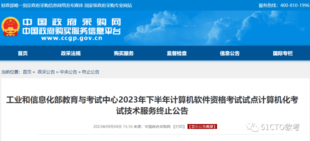 昨日,随着软考报名拉开序幕,中国政府采购网也发布了一则有关软考机考项目采购终止的公告,以下是原文↓