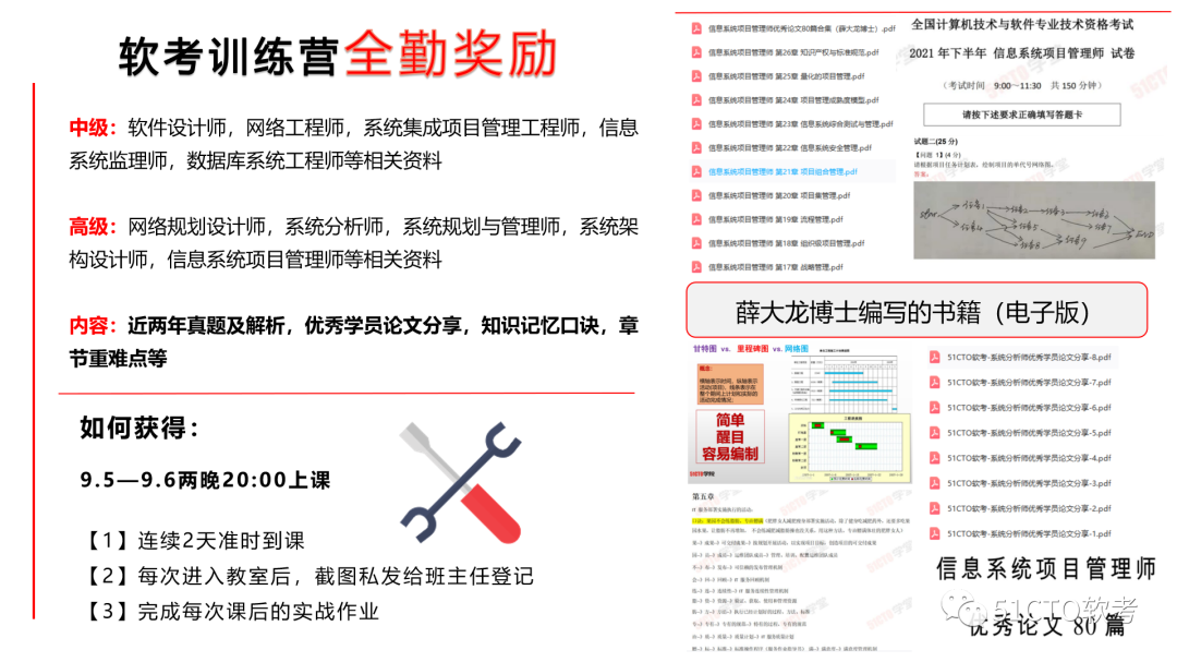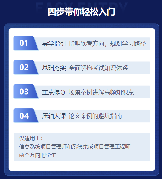 完成本体验营所有课程及作业考核,学员将学习信息系统项目管理师、系统集成项目管理工程师的高频考点及答题技巧: