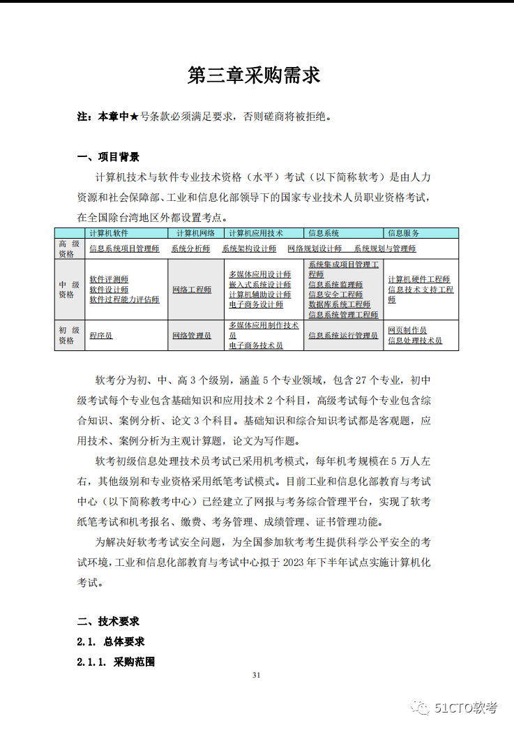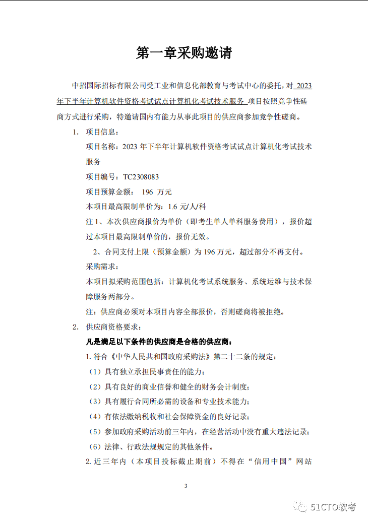 如想获取完整文件,可私信51CTO软考后台,回复【招标】