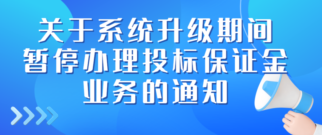 因贵州阳光产权交易所有限公司内部业务系统升级调整,拟定于2023年9月7日(星期四)上午8:30至2023年9月8日(星期五)上午8:00期间暂停保证金提交系统。为避免因保证金缴纳失败导致无法参与项目投标,请参与2023年9月7日至2023年9月8日投标项目的拟投标人于2023年9月6日24时前将保证金打入投标保证金指定账户,其他项目拟投标人请避开投标保证金系统关闭期。