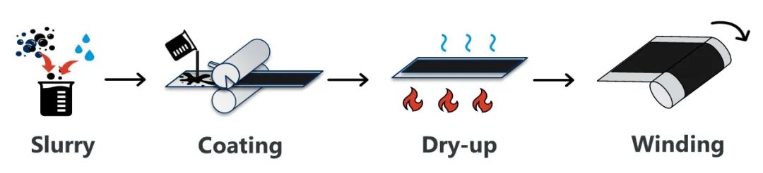 一般的锂离子电池制造工艺分为制作电极之前的“前工序”和组装电池单元并形成电池形状的“后工序”。前工序中的电极制作采用涂布法。将活性物质和导电剂分散到溶解有粘合剂的溶剂中制成油墨(浆液),再将油墨涂在金属箔集流体上,干燥后进行辊压制成电极。电极通常双面涂布的。
